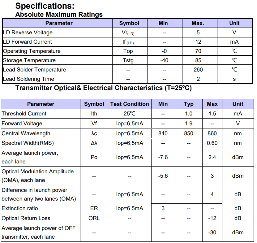 ● 40GBASE–SR4 QSFP+ Transceiver and Active Optical Cable
